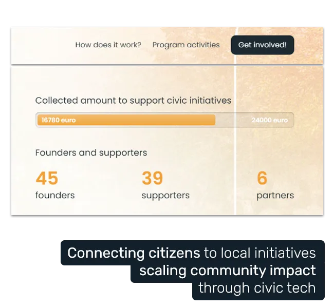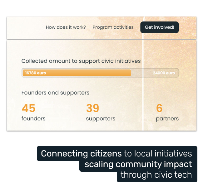 As NGOs need better ways to identify promising local initiatives, connect motivated citizens with opportunities, and amplify small actions into real neighborhood improvements, we joined the effort of building a platform for civic involvement and innovation, which is a mechanism to identify, connect and amplify the impact of local civic initiatives that contribute to improve the quality of life and strengthening local democracy.